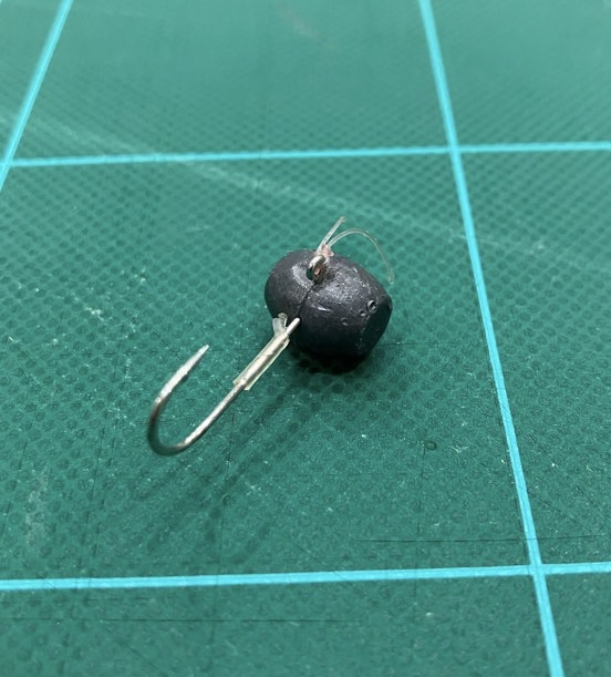 フックの強度については、餌系ジグヘッドの代表格ともいえる『虫ヘッド』の『虫ヘッドパワー』と比べると細軸ですが、実際に45㎝オーバーのチヌでも伸ばされずにキャッチできましたのでフックの耐久性も十分だと思います。太軸のフックに比べて刺さりが良く感じますので丁度良い太さだと思います。